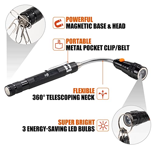 🎁【Perfect tool for men】 Extendable stem, flexible neck, Magnet head and base ,Magnetic ends pick up washers, screws, nuts or bolts when you need a third hand